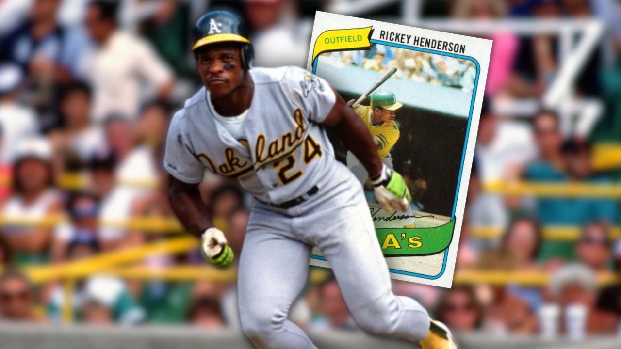 Rickey’s 1980 Topps rookie card is one of the most iconic RCs of the postwar era. That green and yellow A’s color scheme, the base-stealing legend in a posed shot—it’s simple, timeless, and instantly recognizable.